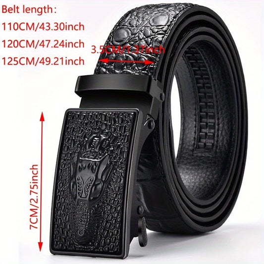 Men's Luxury Belt with Automatic Buckle - Adjustable 120-130cm, Formal & Casual Dress Belt, Alloy Construction for Everyday & Special Occasions - Sophisticated Men's Accessory, Belt Accessories, Stylish Crocodile Texture, Tex
