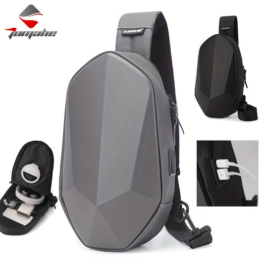 JUMAHE Men's USB Charging Crossbody Bag with Dual Power Ports, Hexagonal Geometric Design Street Style Shoulder Bag - Premium Durable Fabric, Adjustable Strap Zipper Closure for Daily Commute (Black/Grey), Bags for Travel,