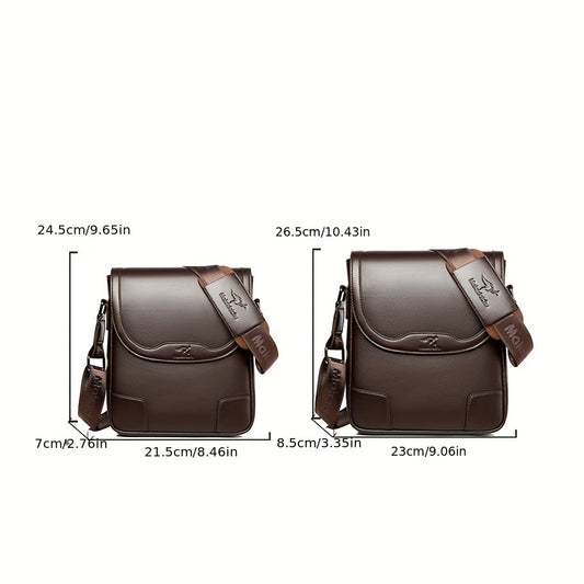 KoxSmar Men's Vintage Synthetic Leather Crossbody Bag - Adjustable Strap, Multiple Compartments, Vertical Business Casual Satchel, Brown, Perfect for Daily Commute or Gift for Father/Anniversary, Small Crossbody Bag