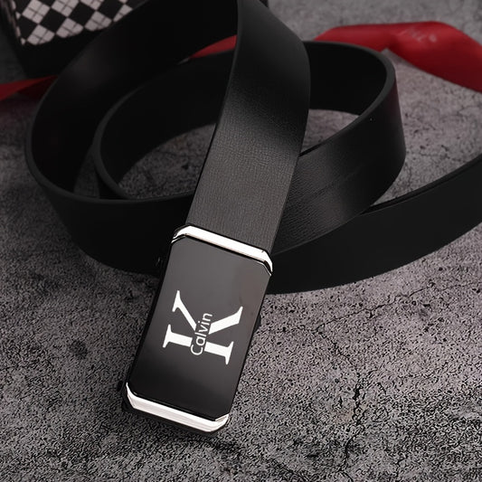 K-Letter Calvin Men'S Automatic Buckle Belt - Adjustable Faux Leather with Golden-Tone Metal Accents, Durable Casual & Formal Accessory for Jeans, Dresses - Ideal Christmas Gift, Belt for Dress, Dress Belt, Modern Belt, Quali