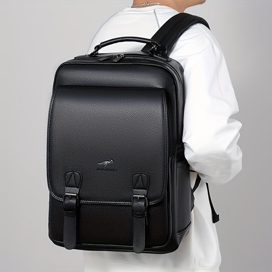 Stylish Men's Backpack - Multifunctional, Large Capacity for 39.62cm Laptop, Business Travel Ready, Durable PU Material