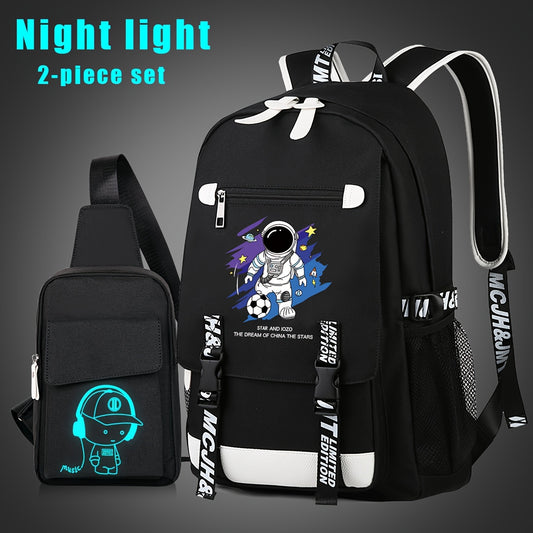 2pcs/set Luminous Men's Backpacks, Casual College Backpacks, Simple Cool Large Capacity Backpacks, Travel Computer Bag