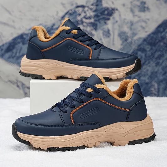 Men's All-Day Comfort Winter Shoes with Faux Fur, Elasticated Laces - Genuine Cowhide Upper & Sole, Low-Top Round-Foot Design for Warmth & Traction - All- Suitable for Travel, Work, Outdoor & Casual Wear