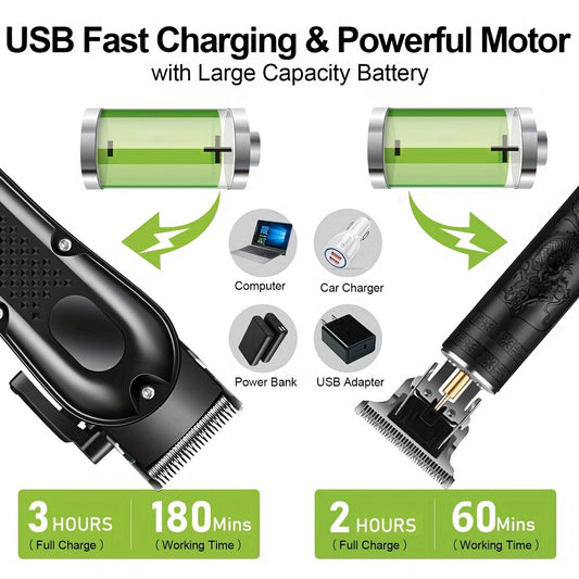 Men'S 2-in-1 Electric Shaver and Hair Clipper with USB Charging, Beard Trimmer, 8 Limit Combs, T-Blade Design, ABS Body, Ideal for Daily Grooming and Gifts