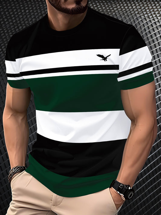 Men's 3D Digital Print Short Sleeve T-Shirt - Bold Striped Color Block Design, Breathable Round Neck, Lightweight All-Season Casual Tee, Machine Washable, Everyday Outfit, Modern Fashion, Durable Tee, Printed Shirt, Streetwea