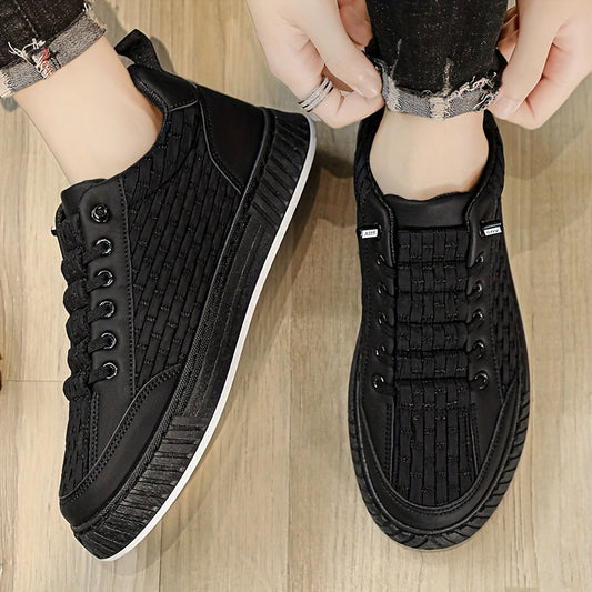 [Urban Appeal] Trendy Solid Color Low Top Sneakers, All-Season Lace-Up Casual Shoes with Faux Upper, Fabric Inner, Rubber Sole, and Comfortable Cloth Insole, Versatile Trainers Modern Sneakers Durable Rubber Sole