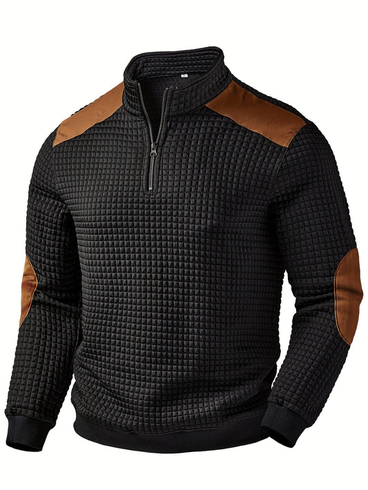 Men'S Autumn And Winter Half-Zip Casual for sports Sweatshirt Suitable for Exercise, Running, And Fitness, Featuring a Stylish And Comfortable Design with a Small Checkered Stand-Up Collar And Available in Plus Sizes