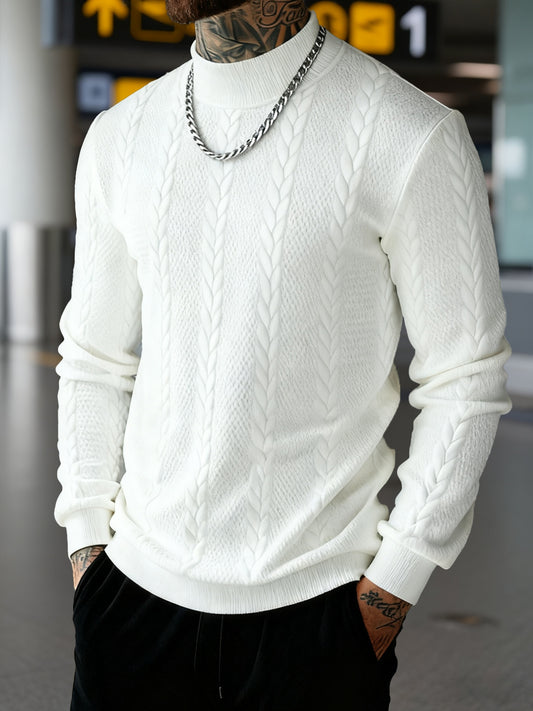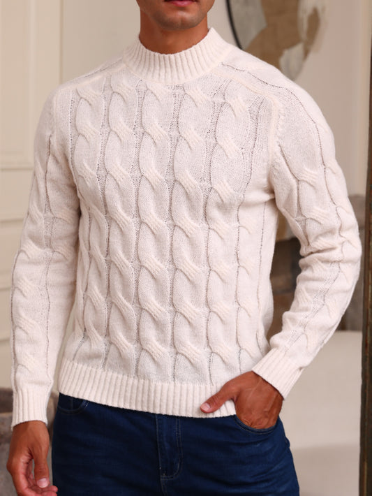 Autumn/Winter New Men's Warm High-Neck Pullover Knit Sweater, Business Casual Windproof Cable Knit Saddle Shoulder Sweater