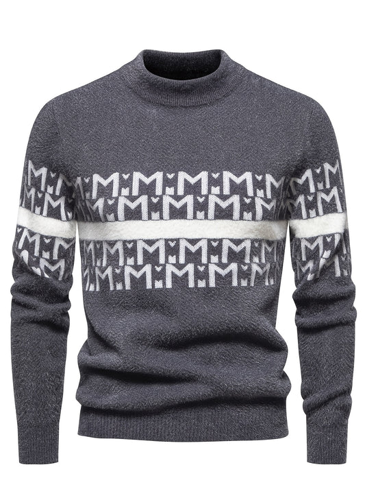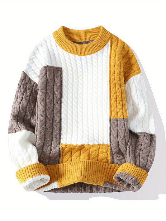 New Autumn-Winter Round Neck Men's Sweater, Fashion Casual Trendy Patchwork Knitwear, Warm Thick Stylish Loose Top