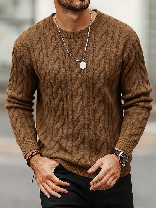 Men'S Knitted Twisted Texture Sweater, Stylish Casual Pullover for Autumn And Winter