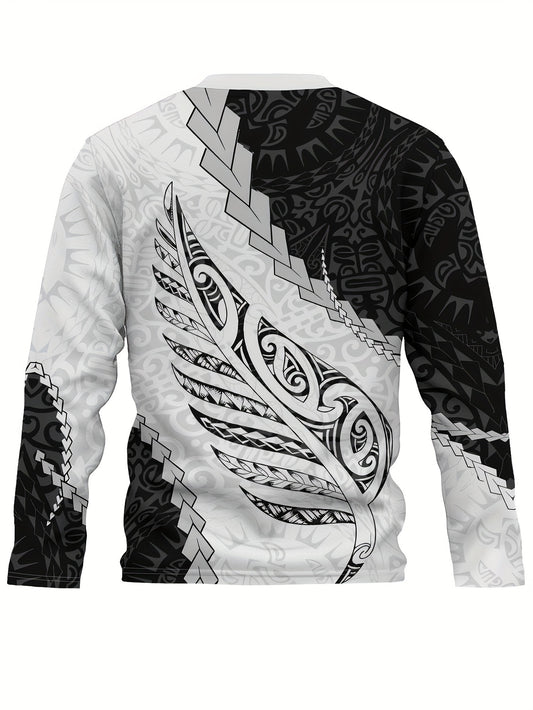Men'S Graphic Design Long Sleeve T-Shirt Featuring The Maori Silver Fern from New Zealand, a Comfortable Casual Sweatshirt Perfect for Spring And Autumn, Ideal for Men'S Novelty Wear