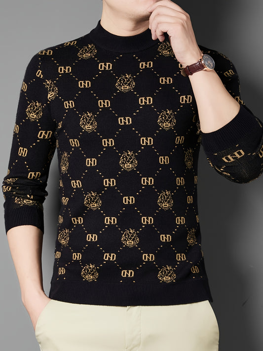 Men's Autumn/Winter High-Neck Sweater, Men's Winter High-Neck Pullover Knit Sweater, Men's Winter Clothing, Men's Sweater, Christmas Sweater, Men's Christmas Sweater, Winter Men's Apparel, New Year's Apparel, Men's Christmas