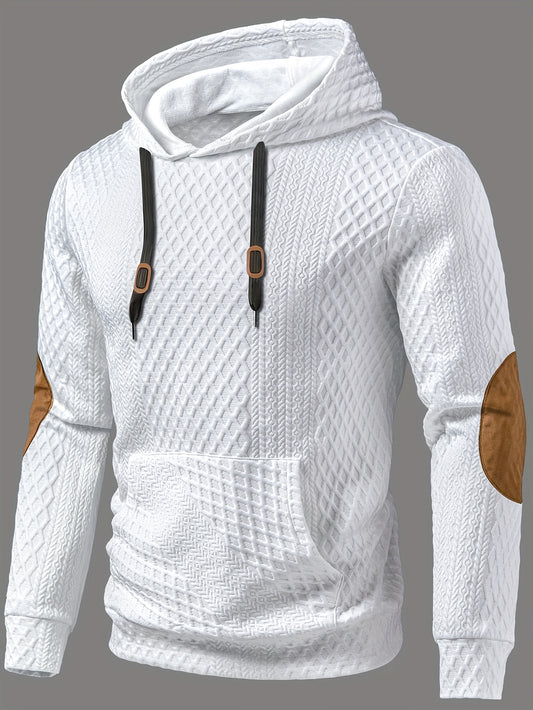 Men's Winter Warm Plaid Patchwork Sweater - Slim Fit Color Block Hooded Pullover with Patchwork Design, Machine Washable Cold Weather Sweaters for Outdoor Sports & Casual Wear (Autumn/Winter)