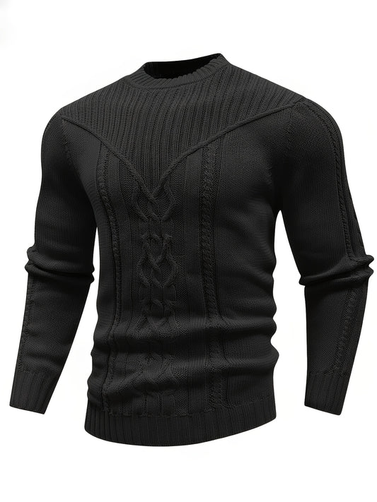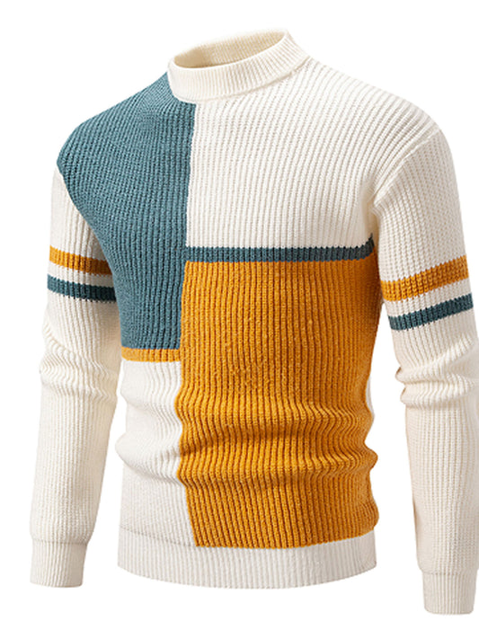 Men's Autumn/Winter Casual Color-Block Twist-Knit Pullover Sweater