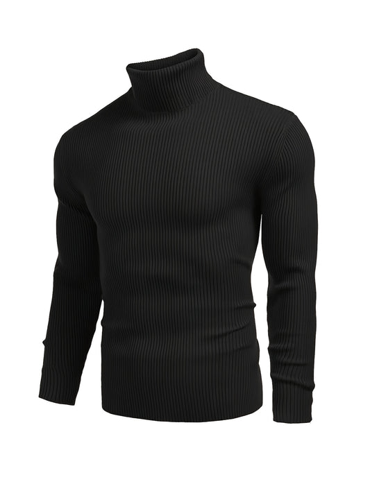 Men'S Solid Color Turtleneck Sweater, Highly Elastic, Stylish, Comfortable, And Warm Top, Suitable for Outdoor Wear in Autumn And Winter, Base Layer Sweater, Striped Knitted Turtleneck Sweater - Long Sleeve Pullover, Featurin