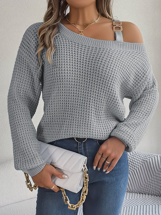 Casual And Versatile Long-Sleeve Sweater with Shoulder Cutouts And Metal Buttons for Autumn And Winter.
