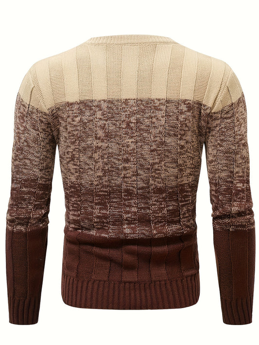 1 Men's Sweater, Trendy Gradient Color Crew Neck Outdoor Casual Top for Autumn and Winter New Arrival