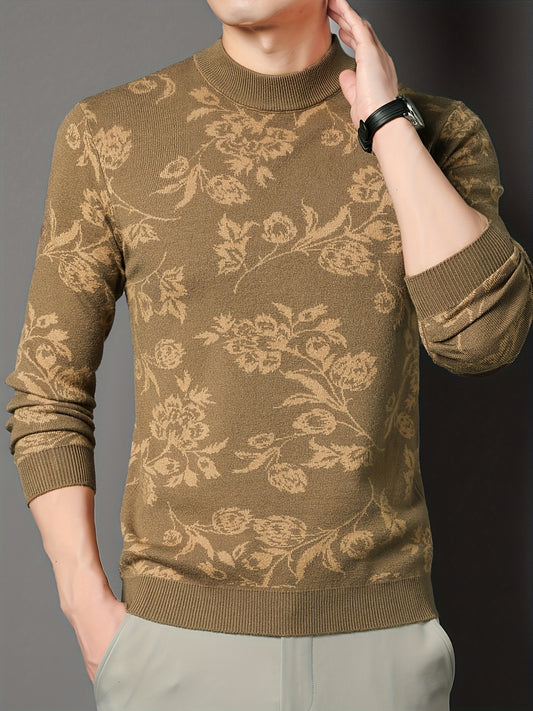 The New Autumn And Winter Collection Features a Men'S Long-Sleeve Knitted Pullover with a Floral Pattern, Designed with Ribbed Details. This Casual And Stylish Sweater Is Perfect for Everyday Wear During The Fall And Winter S