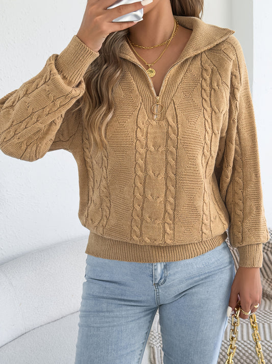 Autumn and Winter Leisure Vacation Pullover Sweater Solid Color Zipper Lapel Women's Sweater