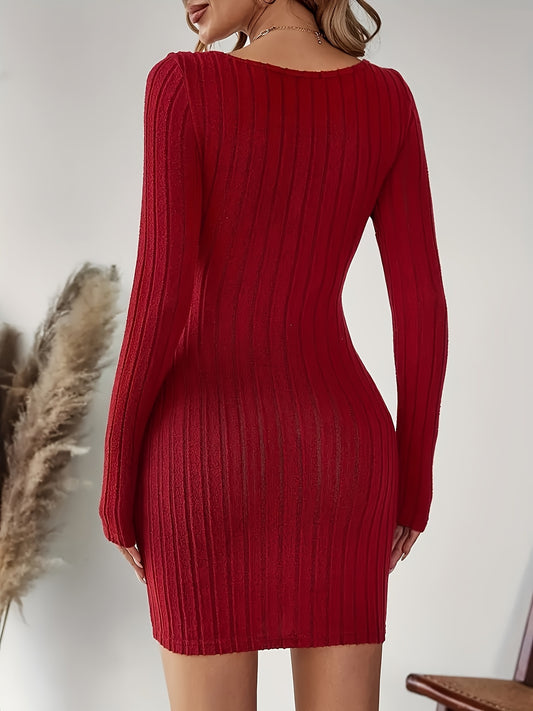 Autumn And Winter Casual Vacation Square Neck Button Decorative Bodycon Dress
