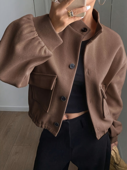 Women'S Elegant Brown Fleece Jacket - Winter Coat with Single-Breasted Button Front, Long Sleeve Tunic Length, Machine Washable & Wrinkle-Resistant, Cozy Outerwear For Fall/winter, Casual To Formal Events, Winter Jacket For W