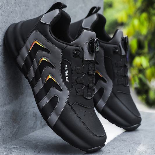 Men's Striped Casual Shoes Rotary Buckle Comfy Durable Outdoor Jogging Hiking Fishing, All Seasons