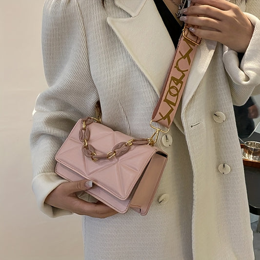 Trendy Crossbody Bag for Women, Stylish And Versatile Chain Shoulder Bag, Small Square Bag with a Lock Clasp