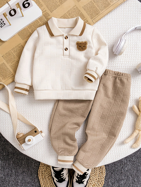 Boys' Casual Outfit with Embroidered Cartoon Bear Design - Long Sleeve Crew Neck Sweatshirt & Pants Set, Double-Sided Flannel, Perfect for Fall/Winter, Everyday Comfort, Everyday Comfort Wear|Playful Design|Double-Sided Flann