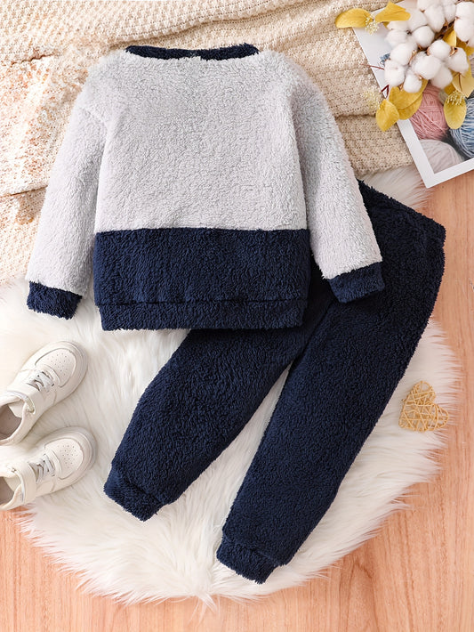 Boys' "LOS ANGELES" Color Block Plush Set: Sweatshirt + Pants - Warm And Comfortable Two-Piece Set for Everyday Wear And Outings, for Outdoor
