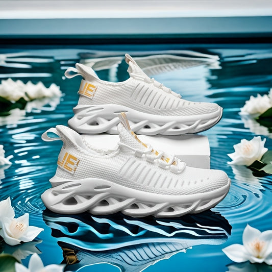 Boys' Breathable Knit Sneakers - Lightweight Running & Training Shoes with Air Cushion, Non-Slip MD Sole, Lace-Up Design, Available in Black & White