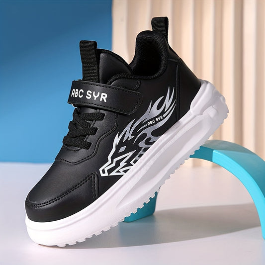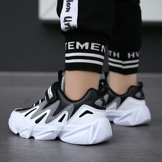 Youngsters' Stylish Athletic Footwear - Comfortable Non-Slip Soft Sole Walking Shoes for Boys & Girls, All-Season, Black & White with Hook and Loop Closure