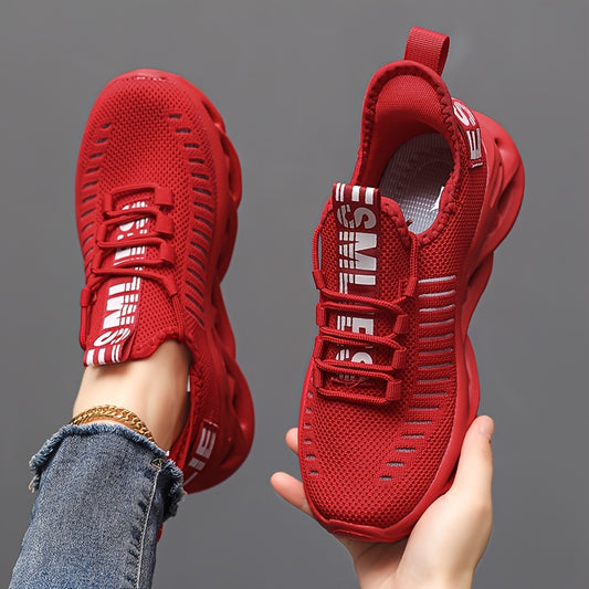 Youngsters' Lightweight Breathable Sneakers - Geometric Pattern Low-Top Sneakers for &, All-Season Comfort with EVA Sole, Red/Black Unisex Casual Shoes for Running, Sports & Daily Wear, Sleek Sporty Design, Fabric Upper, Tren