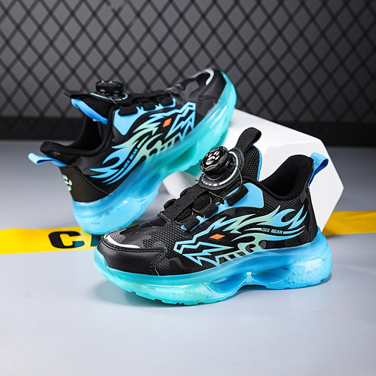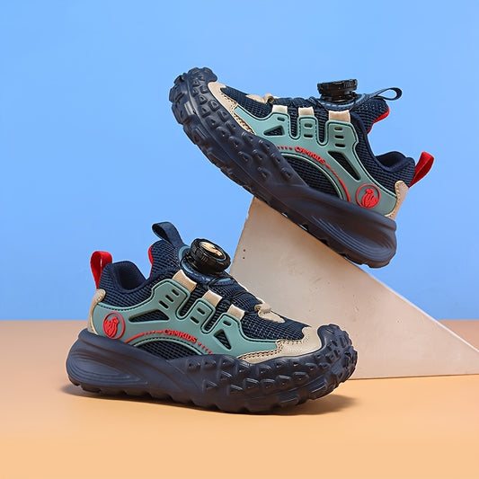 Boys' Fashion Sneakers - Breathable, Non-Slip Running Shoes with Rotating Buckle Closure for Youngsters & Teens