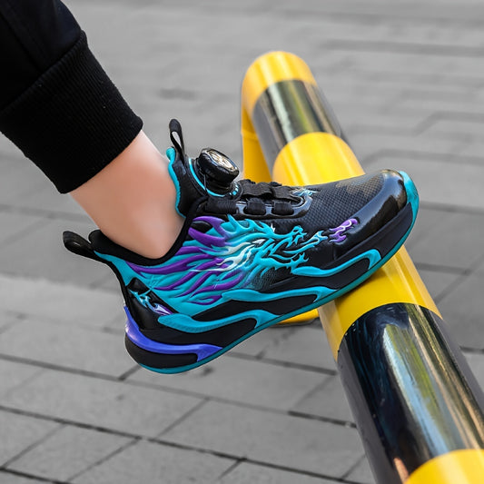 • Boys' Fashion Sneakers - Breathable, Non-Slip Running Shoes with Rotating Buckle Closure for Youngsters & Teens