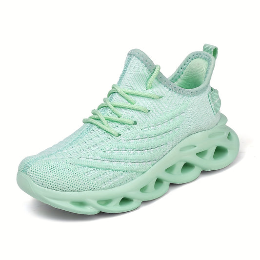 Youngsters' All-Season Breathable Running Shoes - Lightweight Mint Green Sneakers with Slip-On/Lace-Up Closure, Hollow-Out Design & MD Sole for Boys & Girls, Casual Training & Daily Wear, Kid Shoes, Sleek Sporty Design, Comfo