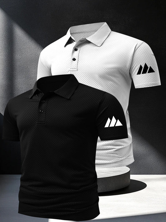 2pcs Minimalist Small Mountain Badge Pattern Men'S Outdoor Golf And Equestrian Casual Polo Short Sleeves, Mature Men'S Business Casual Polo, Breathable And Comfortable, Suitable for Spring And Summer, Can Be Worn As an Inner