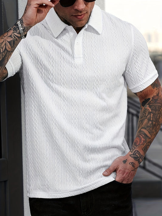 Summer Casual Textured Polo Shirt | Men'S Short Sleeve, Regular Fit, Solid Color with Button Details, Perfect for Outings and Festivals