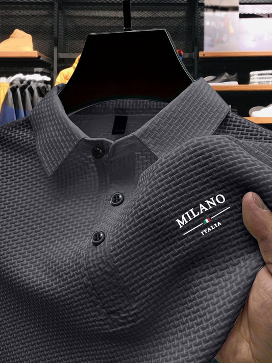 Solid Color Milan Letter Print Color-Blocking Design, New Men'S Short-Sleeved Polo Shirt Lapel Summer Solid Color Clothes Top T-Shirt Short-Sleeved Versatile Men'S Clothing Comfortable Short-Sleeved Top Home Casual Outing Act
