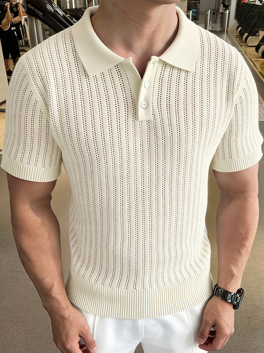 Men'S Summer Knitted Polo Shirt | Breathable Striped Design, Casual Lapel Collar, Short Sleeves, Three-Button Closure, Slim Fit, Ideal For Business Casual And Travel