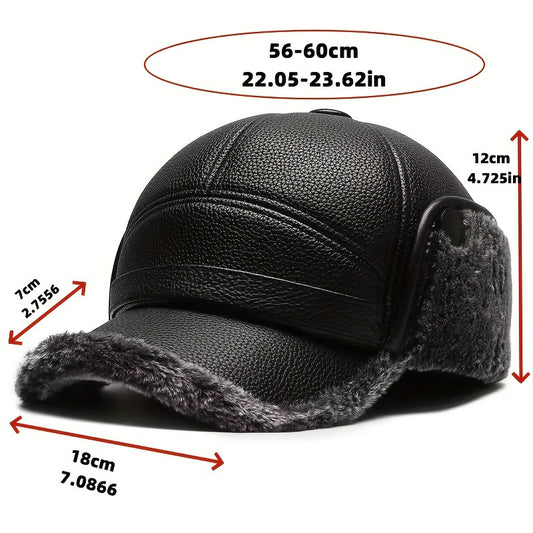 Street Style Men's Winter Cap with Ear Warmers, Faux Leather Earflap Hat for Elderly, Warm Duckbill Cap for Cold Weather