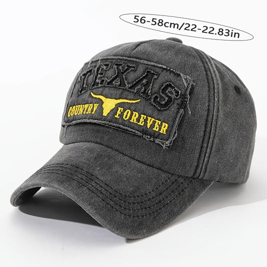 1pc, "TEXAS" 3D Patch Cut Washed Baseball Cap, Featuring English Letters And Horn Flat Embroidery, Dual Color, Rock Style, Western Dad Hat, Suitable for Gifting to Husband, Colleagues, Or Friends, New Style for Spring And Sum
