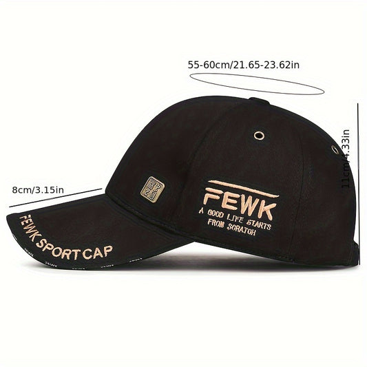 FEWK Unisex Baseball Cap | Breathable Polyester | Adjustable Fit | Embroidered Logo & Golden Badge | Stylish Streetwear for Spring/Autumn, Outdoor Headwear | Golden Badge Design | Durable Cap