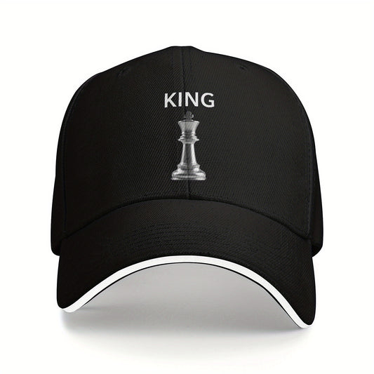 Chess King Snapback Baseball Cap - Black with White Chess Piece Design, Unisex Casual Sun Protection Hat for Men & Women, Perfect Gift for Chess Enthusiasts, Summer Cap | Unisex Hat | Durable Headwear