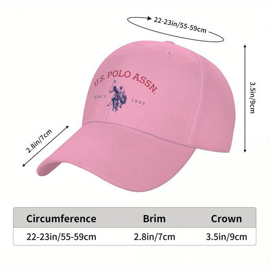 U.S. Polo Assn. Since 1890 - Adjustable Baseball Cap with Sun Protection, Classic Sporty Style, 1pc White Polyester Hat with Red & Blue Print, Perfect for Casual Outdoor Activities, Ideal Gift for Men and Wome