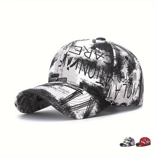 Stylish baseball cap with cool graffiti letter print, hard top, trendy hip-hop design, versatile sun protection hat for both European and American styles, available in 4 colors