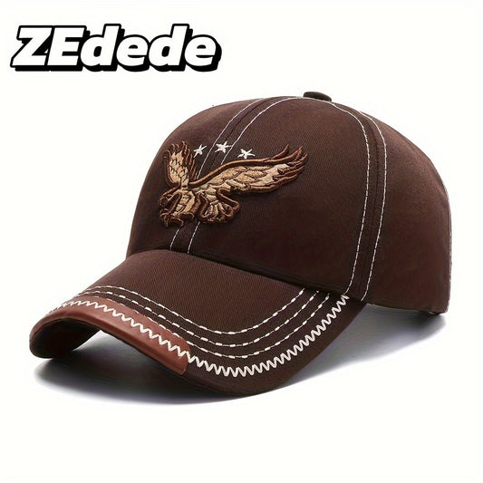 2pcs ZDEDE 3D Eagle Embroidered Baseball Cap - Stylish & Durable Adjustable Snapback Hat with Faux Leather Patch, Black Polyester for Outdoor Sports & Casual Wear - Perfect for Men & Women