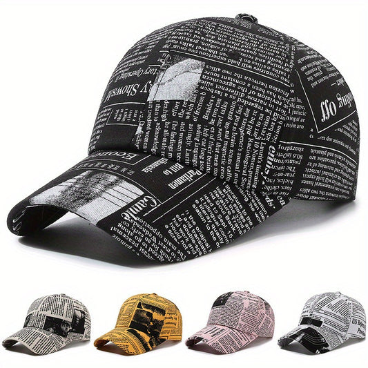Vintage Printed Baseball Cap Casual Unisex Newspaper Cap Lightweight Adjustable Dad Hats For Women Men