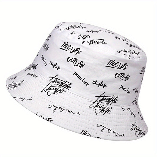 Reversible Men's Bucket Hat with Letter Print - Funky Style, Sun Protection & Versatile for Outdoor Activities, Foldable Sun Hat
