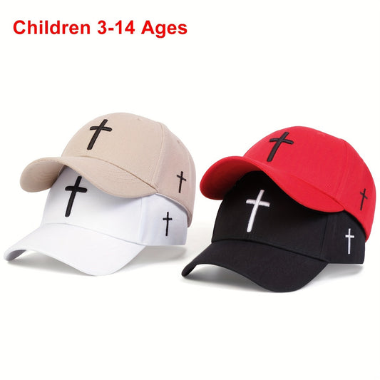 Adjustable Sun Protection Baseball Cap for Boys - Black with White Cross Design, Polyester, Fitted Closure, Ideal for Outdoor Activities, Travel, and Beach, Travel Headgear | Stylish Headgear | Adjustable Headgear