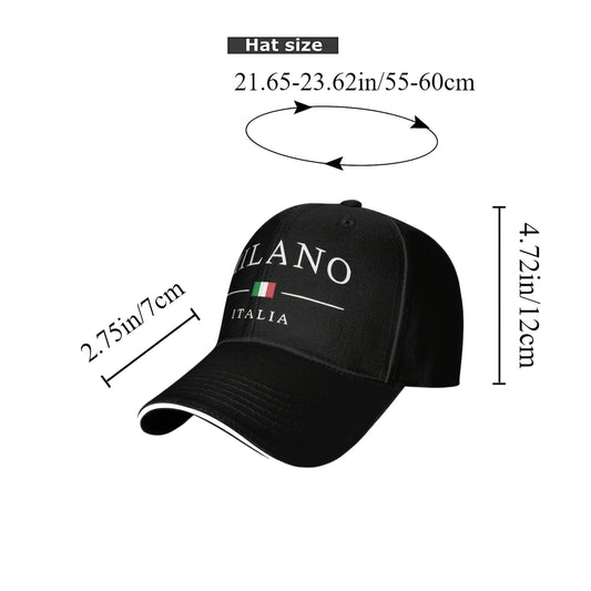 Adjustable Milan, Italy Print Baseball Cap - Breathable Polyester Dad Hat with Italian Flag Design, Black & White, Perfect for Outdoor Activities, Casual Wear, and Gifts